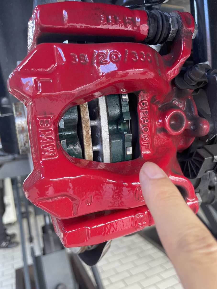 FRONTとREARのバランスを考え、前後で異なる摩擦材を使用.