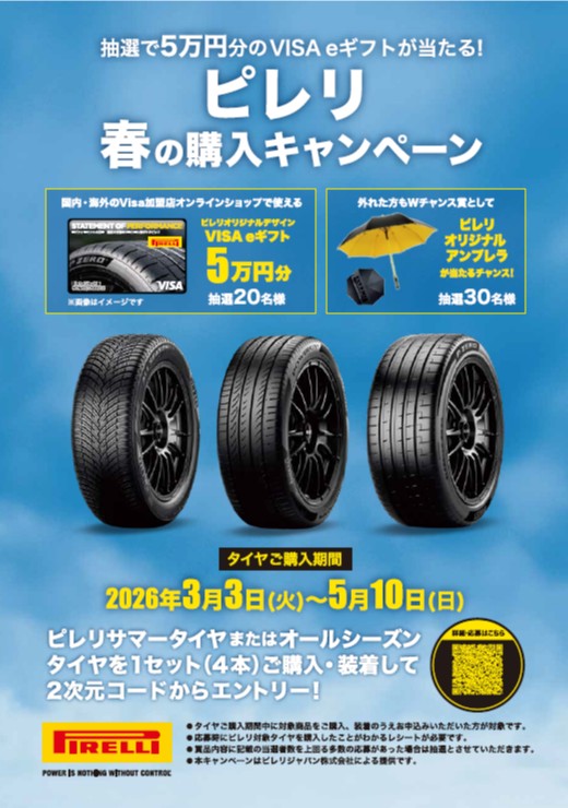 2026年3月3日(火)~5月10日(日)にピレリ取扱い各店(一部店舗・商品を除く)にて