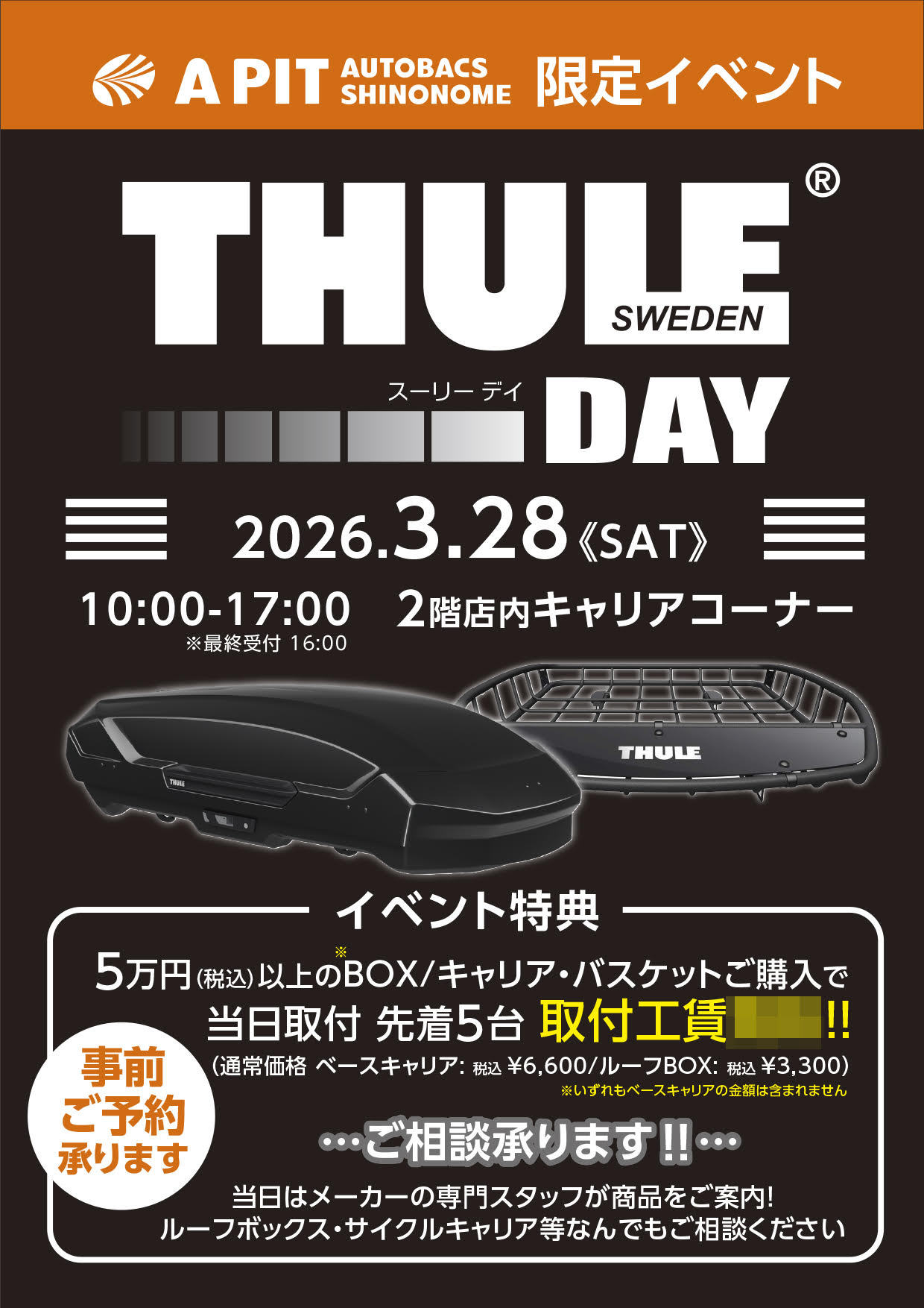 2026年3月28日(土) THULEキャリア商談会開催 – A PIT AUTOBACS SHINONOME