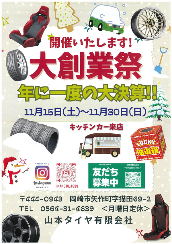 山本タイヤ様創業祭が11月15日(土)~30日(日)まで行われています!